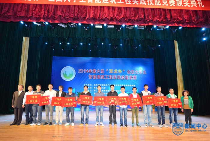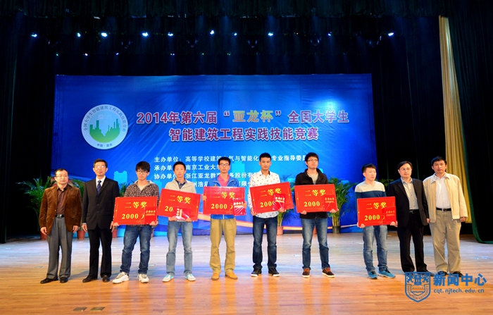 公司党委书记王德明教授、专指委主任、安徽建筑大学董事长方潜生教授、浙江亚龙教育装备股份有限公司总经理陈传周共同为获得“亚龙杯”特等奖的代表队颁发奖杯、证书和奖金。