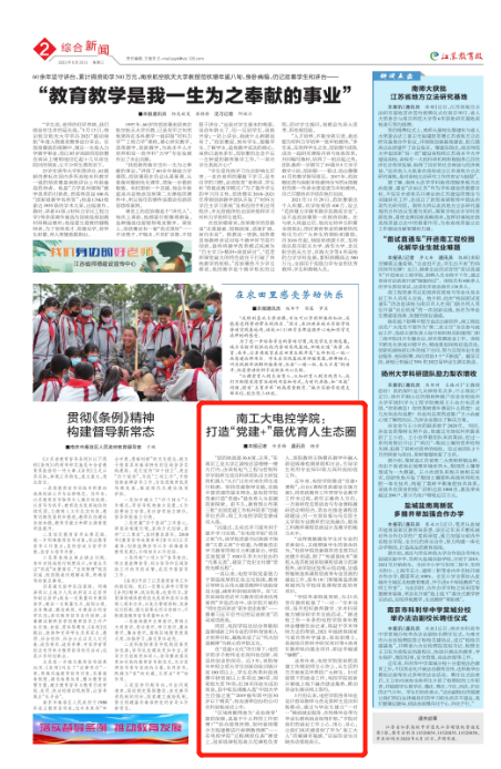 5月25日,《江苏教育报》第2版以《南工大ladbrokes立博:打造“党建+”最优育人生态圈》为题,专题报道公司“党建+”育人生态圈工作。