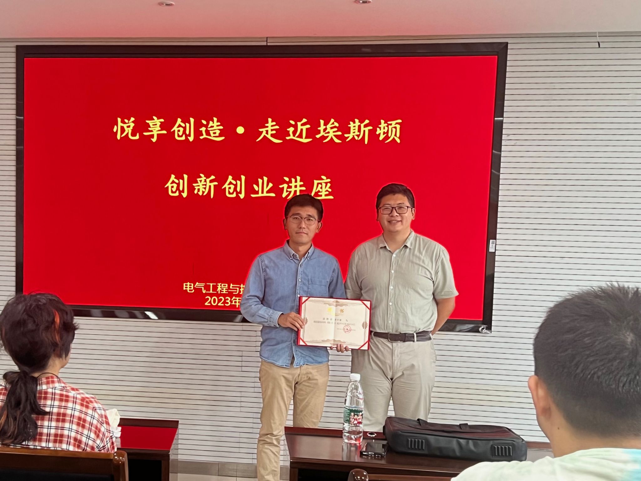 9月14日下午,公司在崇德楼D416举行创新创业导师聘任仪式暨第五期“悦享创造”创客沙龙——走近埃斯顿。电力系统及自动化系主任崔行磊、副系主任李佳承、23级电气(英才)班和电气中外合作班全体新生参加了此次仪式。仪式由电气系主任崔行磊主持。