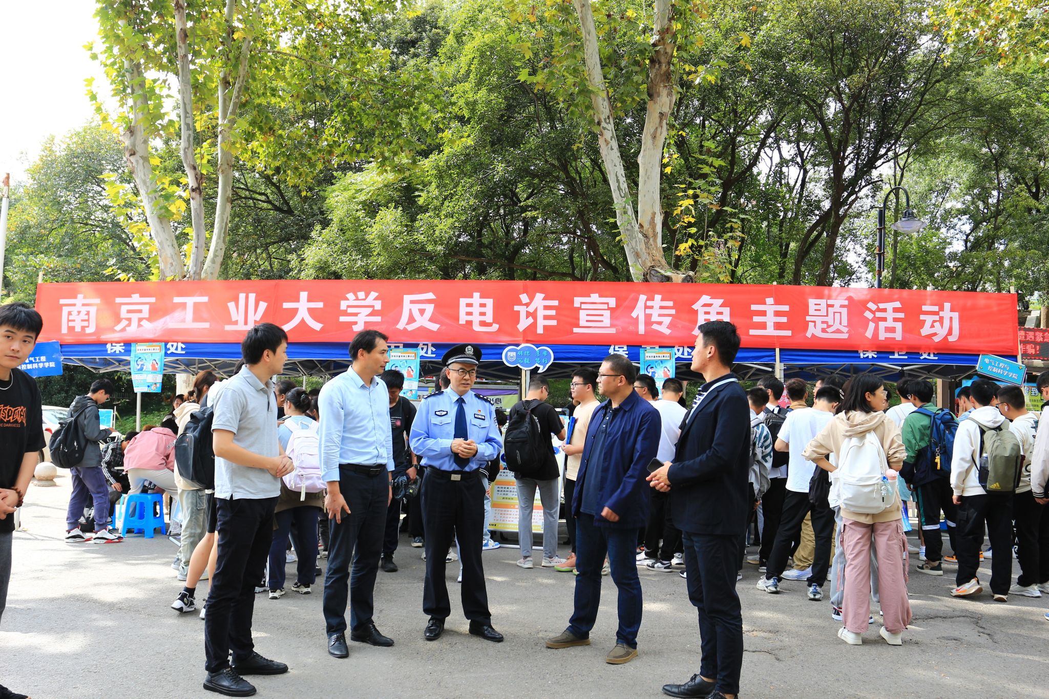 为进一步加强反电诈宣传教育,创建无诈校园,10月13-15日,保卫处、ladbrokes立博在江浦校区象山宿舍区联合举办反电诈宣传角主题活动。南京市公安局江北新区分局内保支队四级高级警长叶江山、保卫处副处长李智、ladbrokes立博副书记于志杰等出席活动。