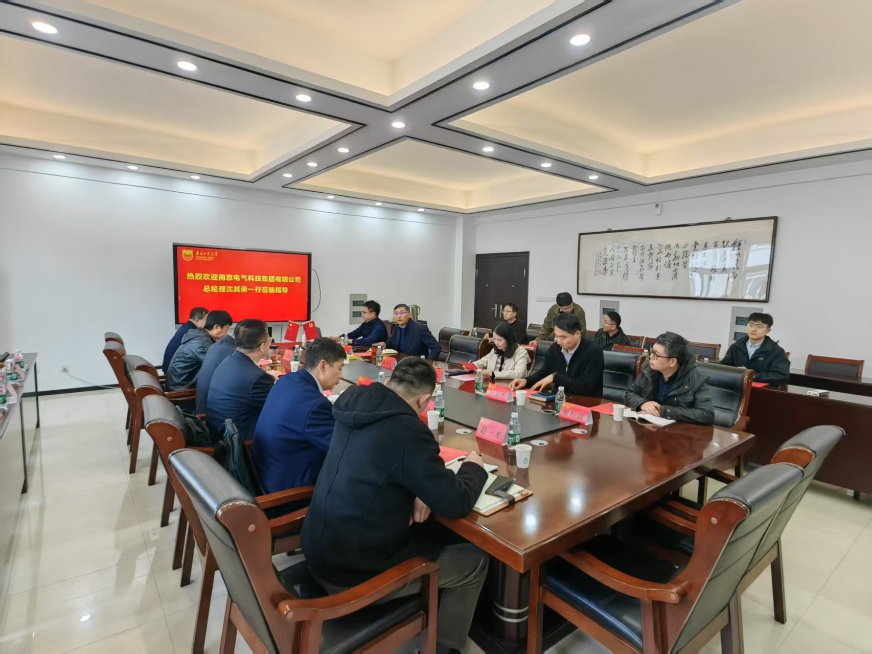 方志经理就公司基本情况、公司发展概况、学科特色方向以及公司高电压绝缘方向科研成果等进行了介绍。沈其荣董事长介绍了南京电气科技集团有限公司的发展历程、企业核心绝缘装备以及未来发展方向等,并希望通过多方位的产学研合作,助力企业高质量发展,为国家电力建设和全球电力发展做出新贡献。