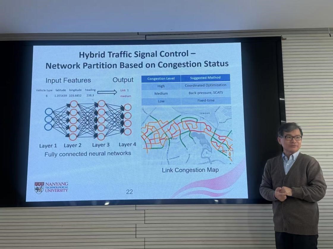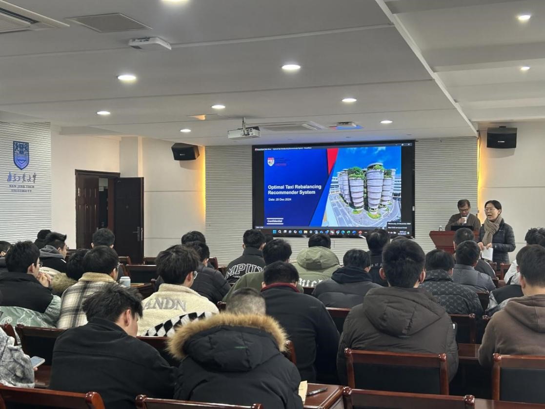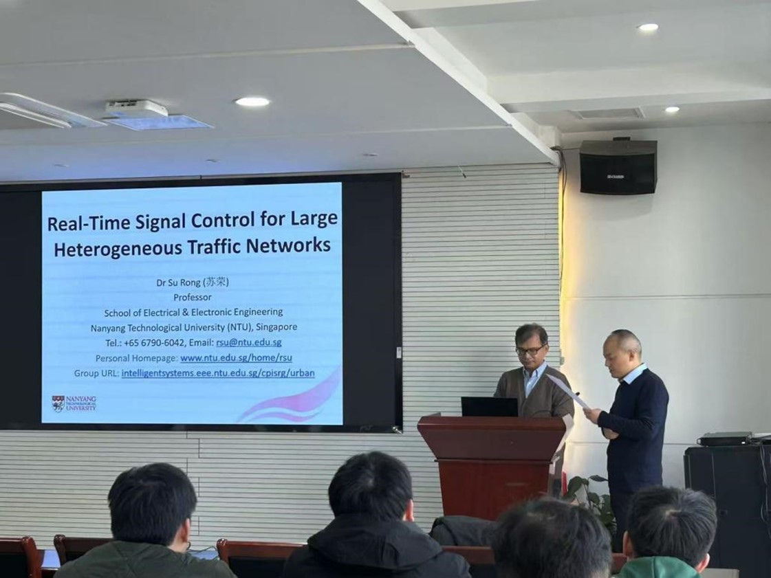 Rong Su教授分别做了题为“Real-Time Signal Control for Large Heterogeneous Traffic Networks”和“Optimal Taxi Rebalancing Recommender System”的学术报告,介绍了其团队在大型交通网络中路口的交通信号控制问题和移动网格中出租车的供需不平衡问题中的研究进展。在互动环节,Su教授与现场师生进行了深入的交流。本次报告让现场师生受益匪浅,不仅了解了最新研究方向,也激发了科研热情。