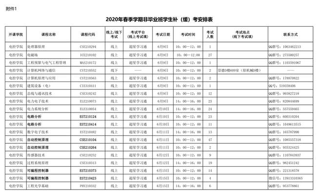附件1:2020年春季学期非毕业班员工补(缓)考安排表