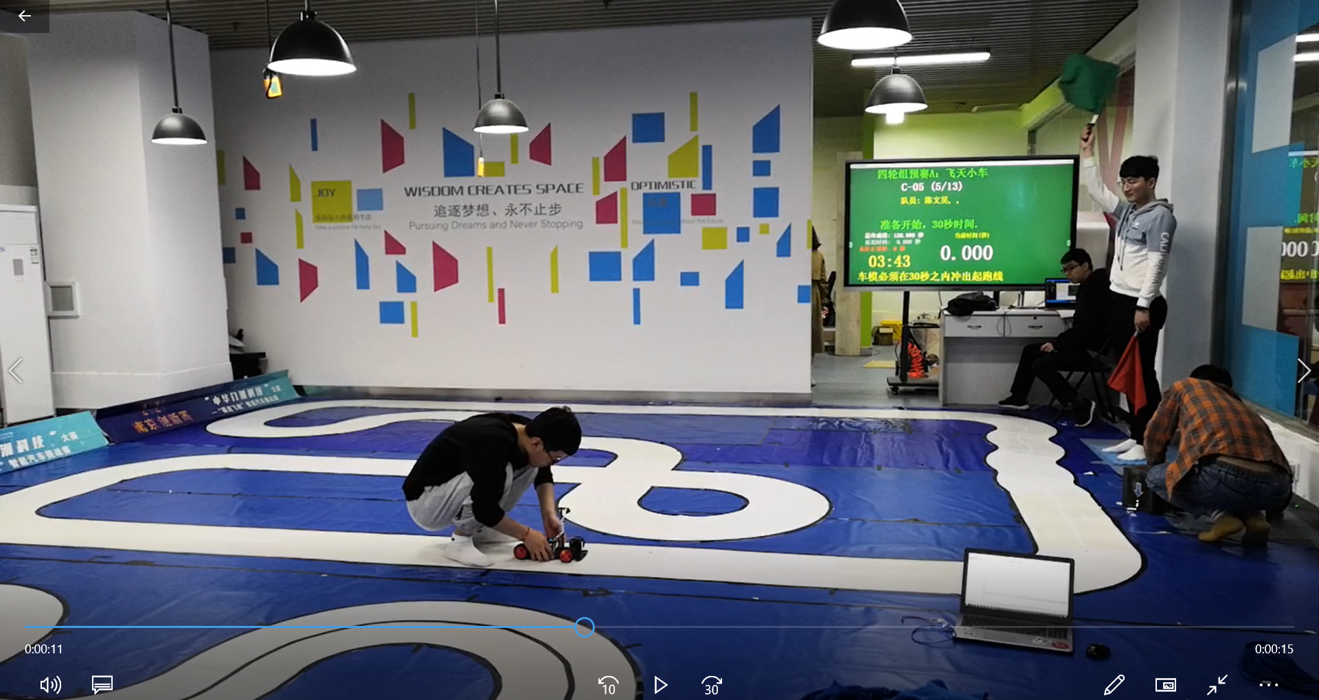 本次比赛采用全国赛的标准赛制,比赛气氛热烈。现场同时进行基础四轮组、基础红外组和提高组的比赛。经过了4个小时的比赛,共决出一等奖4支、二等奖6支、三等奖8支,其中能跑就行队和飞天小车队获得基础四轮组一等奖,正义联盟队获得了基础红外组一等奖。