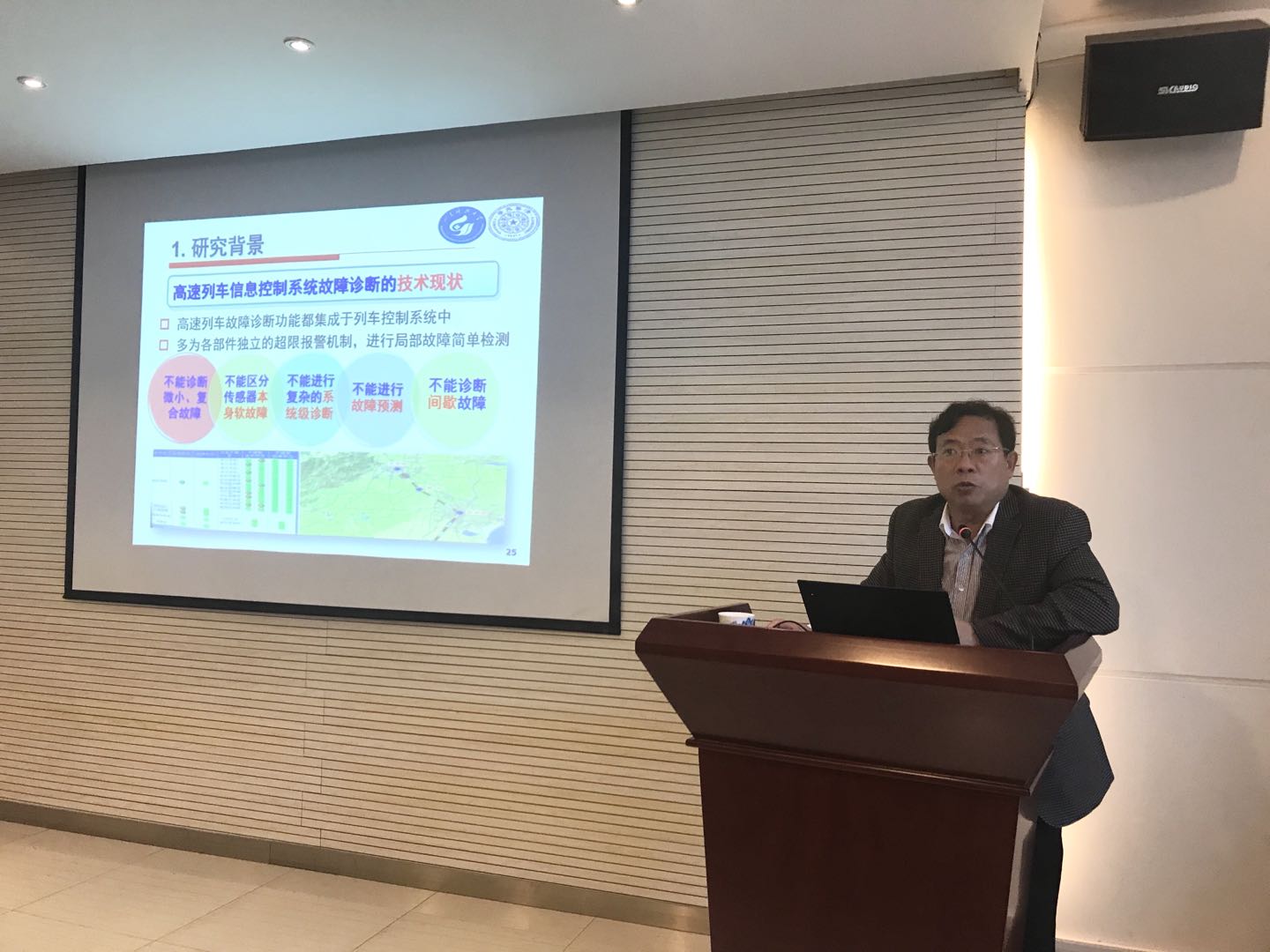 周教授的报告总结了其负责的国家自然科学基金重大项目“高速列车信息控制系统实时故障诊断与应用验证”的最新研究成果,介绍了团队经过前后9年攻关,针对高速列车运行中微小故障诊断、间歇故障诊断、闭环故障诊断、复合故障诊断等世界难题取得的突破性理论成果和典型应用,并介绍了团队完成项目中攻克科研难题的宝贵经验。周教授的报告深入浅出,启发了与会师生的科研思路,激发了大家刻苦钻研的钉钉子精神,受到热烈欢迎。