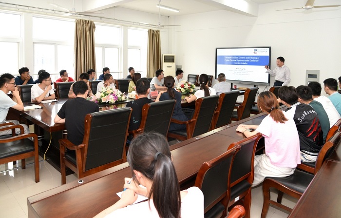 Peng SHI教授的报告围绕控制领域的热点-信息物理系统在恶意拒绝服务(DoS)攻击下的可靠控制和滤波器设计展开。介绍了信息物理系统的概念、挑战和热点问题,从攻击分类、DoS攻击的数学描述及研究分支进行了简述,给出了安全可靠的控制结构及滤波方案,方案包括了基于滑模的方式和二维系统的方式。Peng SHI教授的报告深入浅出,受到与会师生的欢迎,报告会现场进行了热烈的交流互动。