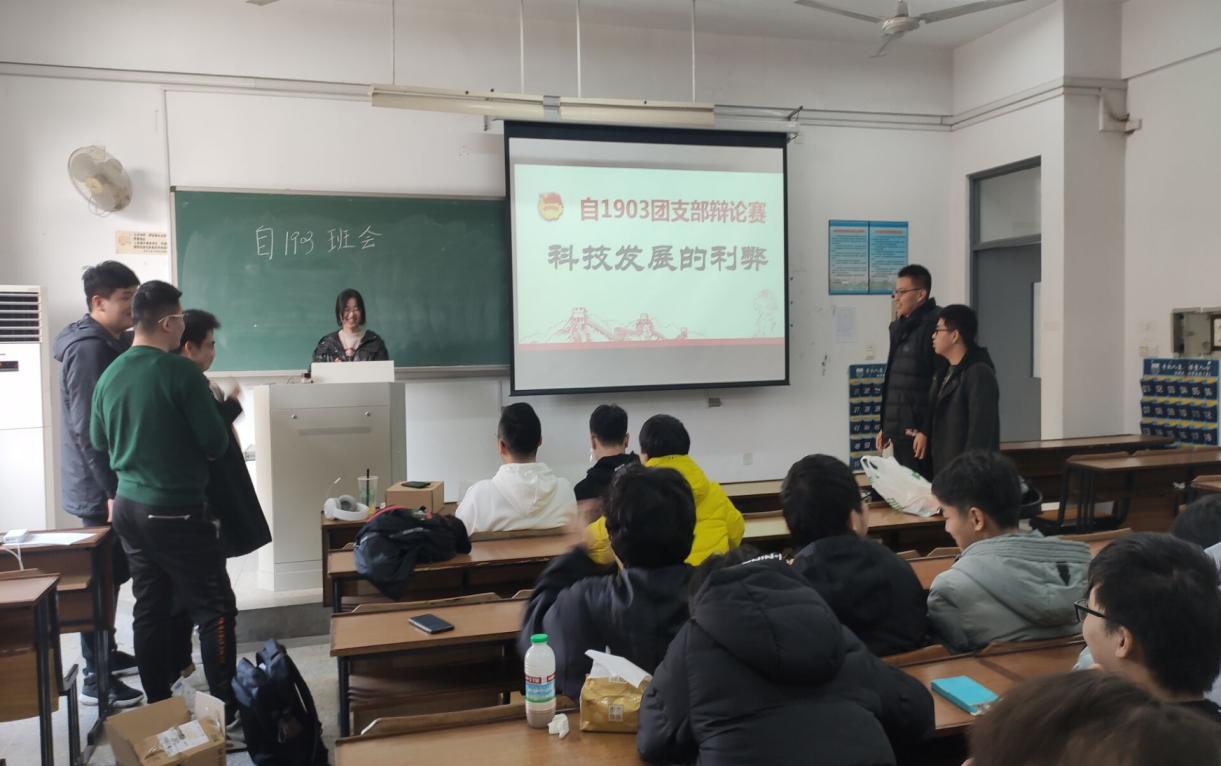 活动伊始,团支书蔡诗辰组织全班同学观看了《创新中国》央视纪录片,同学们聚精会神,专心致志,片后针对视频中的话题展开了热烈的讨论。纪录片让同学们深刻感受到科技创新的重要性,体会到科研人坚守科技创新的伟大。随后,班级同学围绕“科技发展的利弊”展开激烈的辩论,辩论双方充分运用所思所学,从不同的角度提出自己的看法,充分展示了同学们对科技发展的深刻认识。最后,优秀学长袁天带领同学们参观公司楼“创客”实验室,了解智能车、无人机的制造过程和测试环境,与同学们共同探讨科创的前景。
