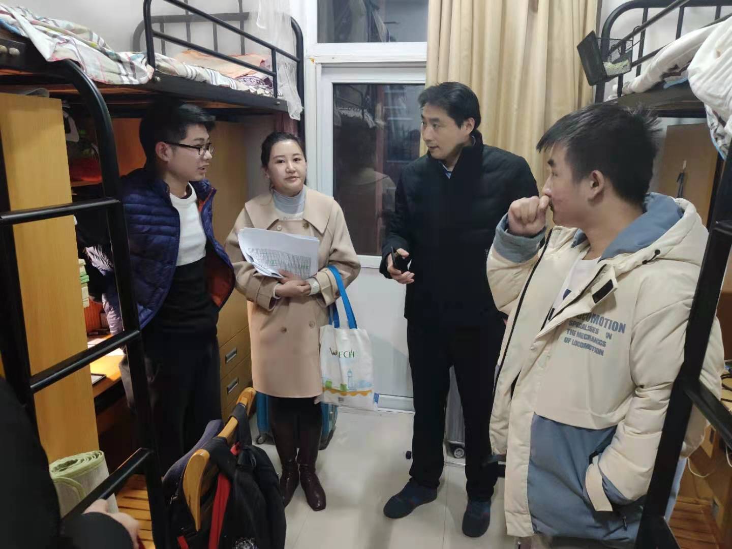 在考研即将来临之际,为给考研学子鼓劲加油,帮助他们坚定信心,积极应对考试,12月22日傍晚,公司党委副书记于志杰带领公司辅导员、员工会代表走进毕业班员工宿舍看望复习备考考研学子。