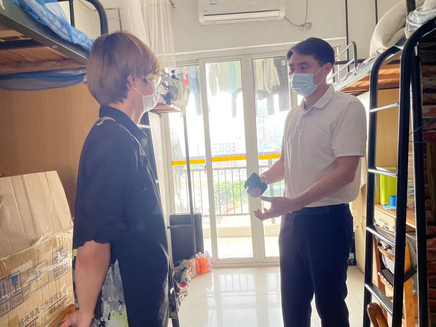 为全面了解留校考研员工的学习生活情况,帮助他们坚定信心,自律备考,保障员工考研复习、学科竞赛等工作有序开展,8月17日,公司党委副书记于志杰,毕业班辅导员刘紫寒等一起走访员工宿舍看望留校考研员工,并向大家发放了慰问品,转达了公司领导和老师对同学们的关心与鼓励。