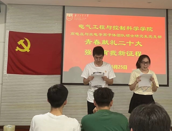 活动过程中,支部党员带来的9个朗诵篇目组成了“大鹏一日同风起”、“雄关漫道真如铁”、“直挂云帆济沧海”三个篇章。同学们精神饱满,逐一登台深情朗诵,从《少年中国说》到《青春中国》,从《觉醒年代》到《今天我们这样爱国》,从《七月赞歌》到《中国青年 国之栋梁》……同学们或娓娓动听,或慷慨激昂,声情并茂地回忆了建党初期那段觉醒年代的波澜壮阔,歌颂了中国特色社会主义建设过程中取得的伟大成就,许下了新时代中国青年“请党放心 强国有我”的铮铮誓言。活动最后,支部组织全体人员观看了纪录片《百年电力》,重温中国百年电气发展历程,感悟一代一代共产党人在我国电力建设中的初心使命。