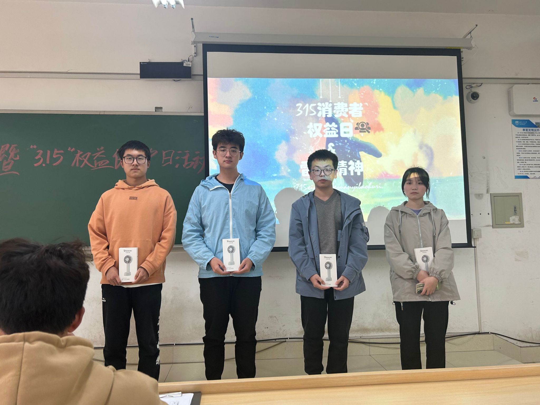 主题宣讲结束后,就创权益部结合《消费者权益保护法》等法律法规开展了知识竞答活动,参与的同学们认真思考,从消费者的角度积极回答问题,现场的工作人员认真统计分数,维持活动秩序,确保活动顺利进行。活动结束后,主持人为获奖队伍颁发了奖品,并一起拍照记录下这一美好瞬间。