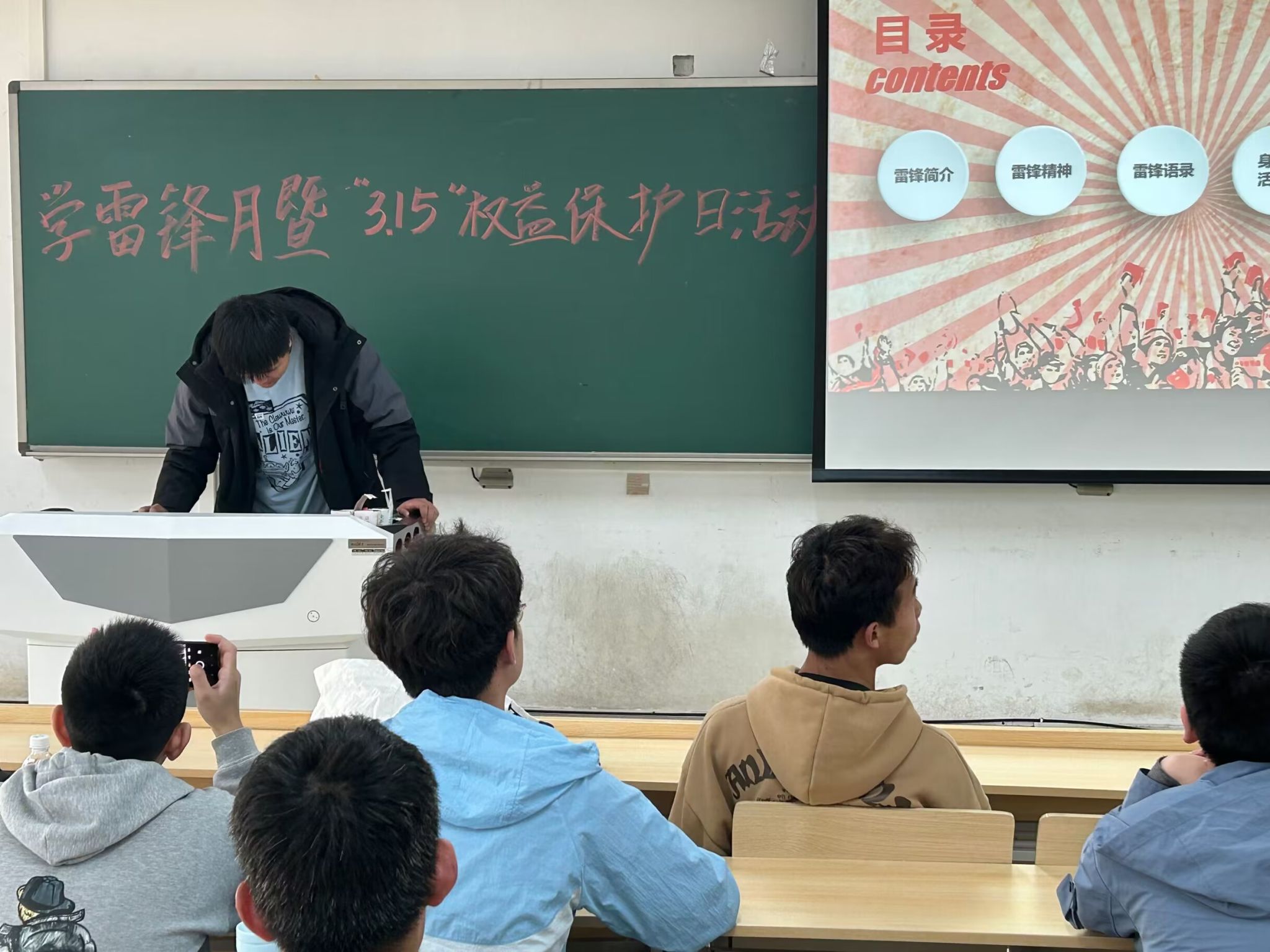 本次活动分为雷锋精神主题宣讲、消费者权益日普法宣传两个环节。活动前期,公司员工会就创权益部通过公司QQ公众号“南工电控君”对本次活动进行大力宣传,详细介绍了此次活动的报名方式、主题内容等,鼓励同学们积极参加。活动过程中,就创权益部王宇涛同学以“雷锋精神的时代内涵”为主题对雷锋精神进行了详细阐释,引导同学们学习雷锋精神全心全意为人民服务,为了人民的事业无私奉献的实质和核心。同时,号召同学们在“学做新时代雷锋”签名墙上签字,做新时代雷锋精神的传承者、践行者。