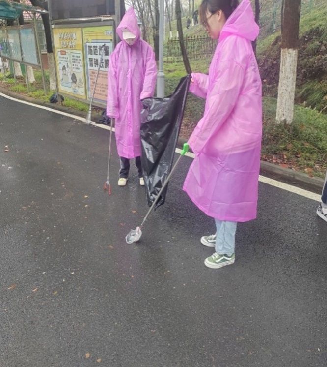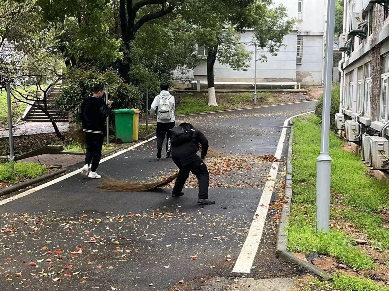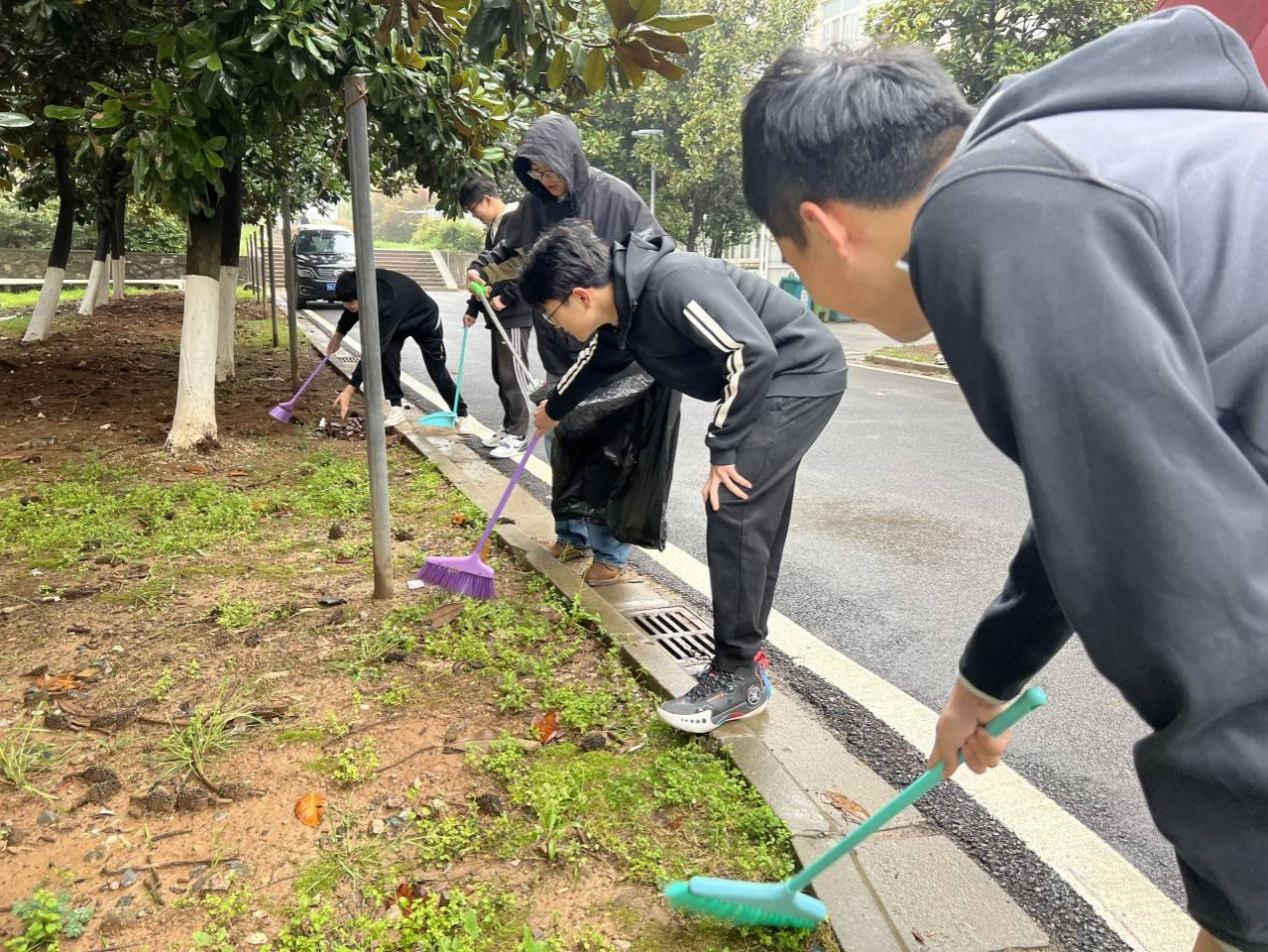 活动当天,同学们在领取劳动工具后,按照事先的分组安排,有序地在各自分配到的区域进行清洁。马路边、楼道里、草丛里出现了一个个忙碌身影,他们使用扫帚、夹子、耙子清理堆积的杂物、路面纸屑落叶、地面烟头等垃圾。即使恰逢雨天,却依然阻碍不了同学们的工作热情,每个同学都以饱满的精神状态参与到象山苑宿舍区域每一寸土地的清扫中,现场呈现一派热火朝天的劳动景象。在同学们的共同努力下,象山苑宿舍区域的环境面貌焕然一新。