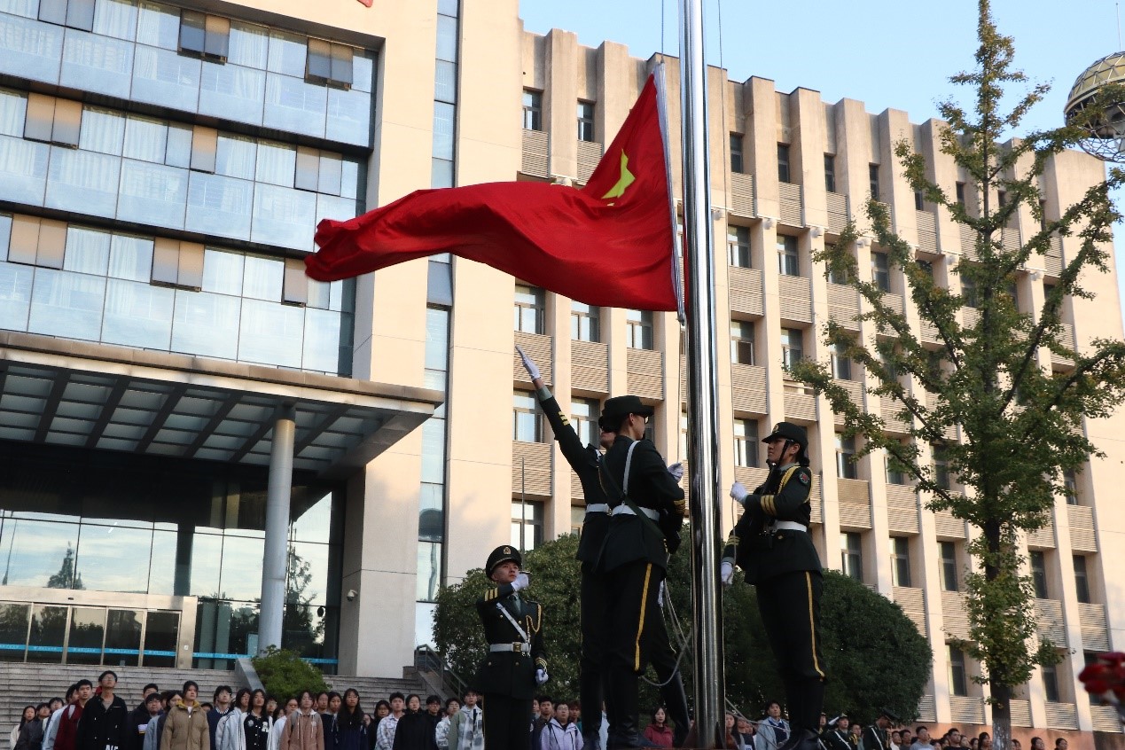 仪式上,国旗护卫队队员为大家普及了《国旗法》《国歌法》等相关知识,深化了同学们对国家象征的深刻理解与崇高敬意。英姿飒爽的国旗护卫队迈着铿锵有力的步伐,在全体师生的肃立注目下,鲜艳的五星红旗冉冉升起,现场气氛庄严肃穆。