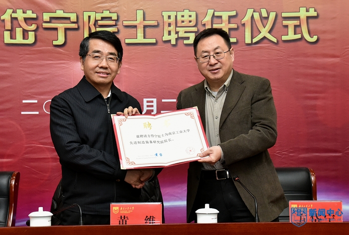 仪式上,董事长黄维院士与方岱宁院士签订了聘任书,员工代表为方岱宁院士献花。副董事长乔旭教授宣读了成立“先进装备制造研究院”及聘任方岱宁院士为先进装备制造研究院经理的文件,董事长黄维院士和方岱宁院士共同为“先进装备制造研究院”揭牌。